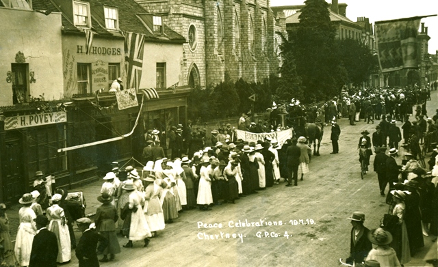 The town’s memorial is dedicated ‘To the honoured memory of the men of Chertsey who fell in the Great War 1914-1919’. The armistice on 11 November 1918 was the ceasefire that ended hostilities, but it was the Treaty of Versailles, signed on 28 June 1919 after six months of negotiations, which formally ended the Great War. By this time, discussions were already underway in Chertsey about potential memorials, although action was deferred until peace was confirmed.