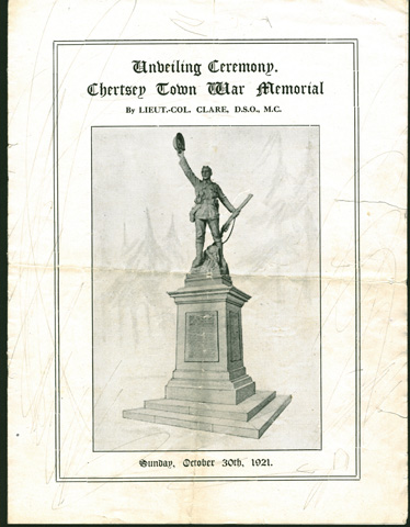 Public memorials and statues invariably attract controversy. This can occur during the planning and fundraising stages, when they are unveiled, or, as witnessed recently, when attitudes change, and the commemoration of certain people or events are no longer deemed acceptable. Following more than two years of wrangling, the Chertsey Town War Memorial was unveiled on 30 October 1921. So, after all that time, how did Chertsey end up with the same statue as Worthing, Stafford, Truro, and Ebbw Vale?